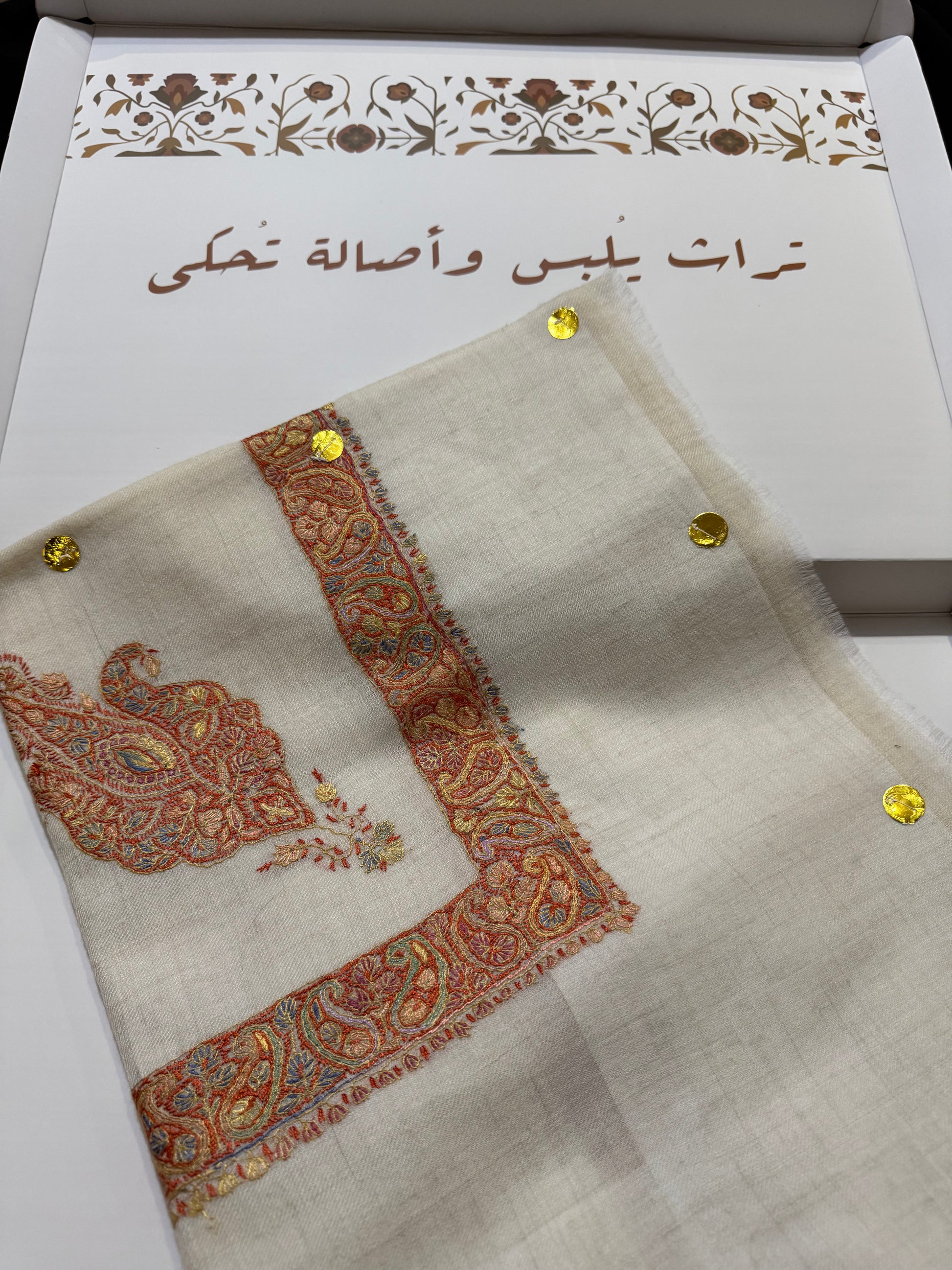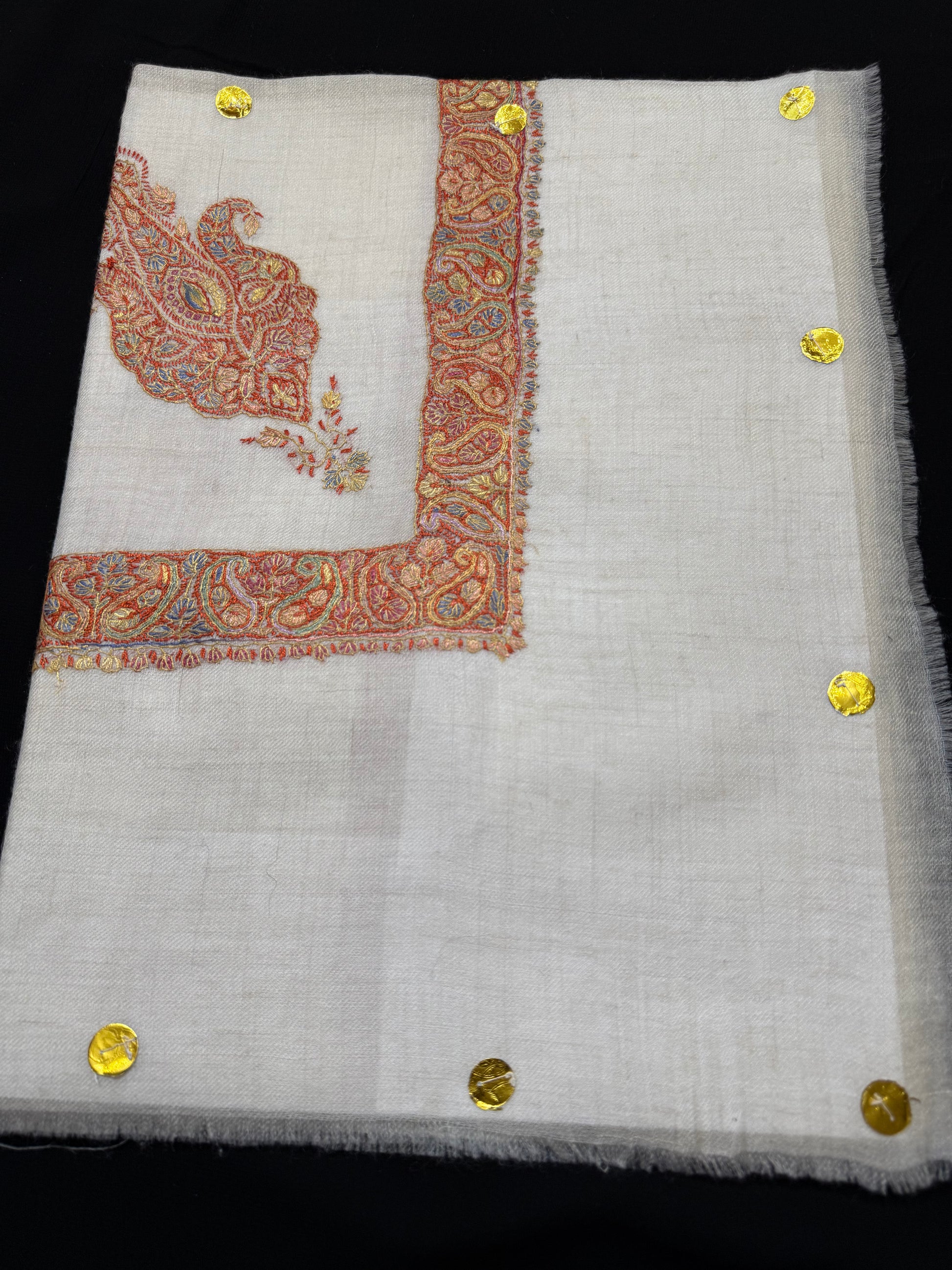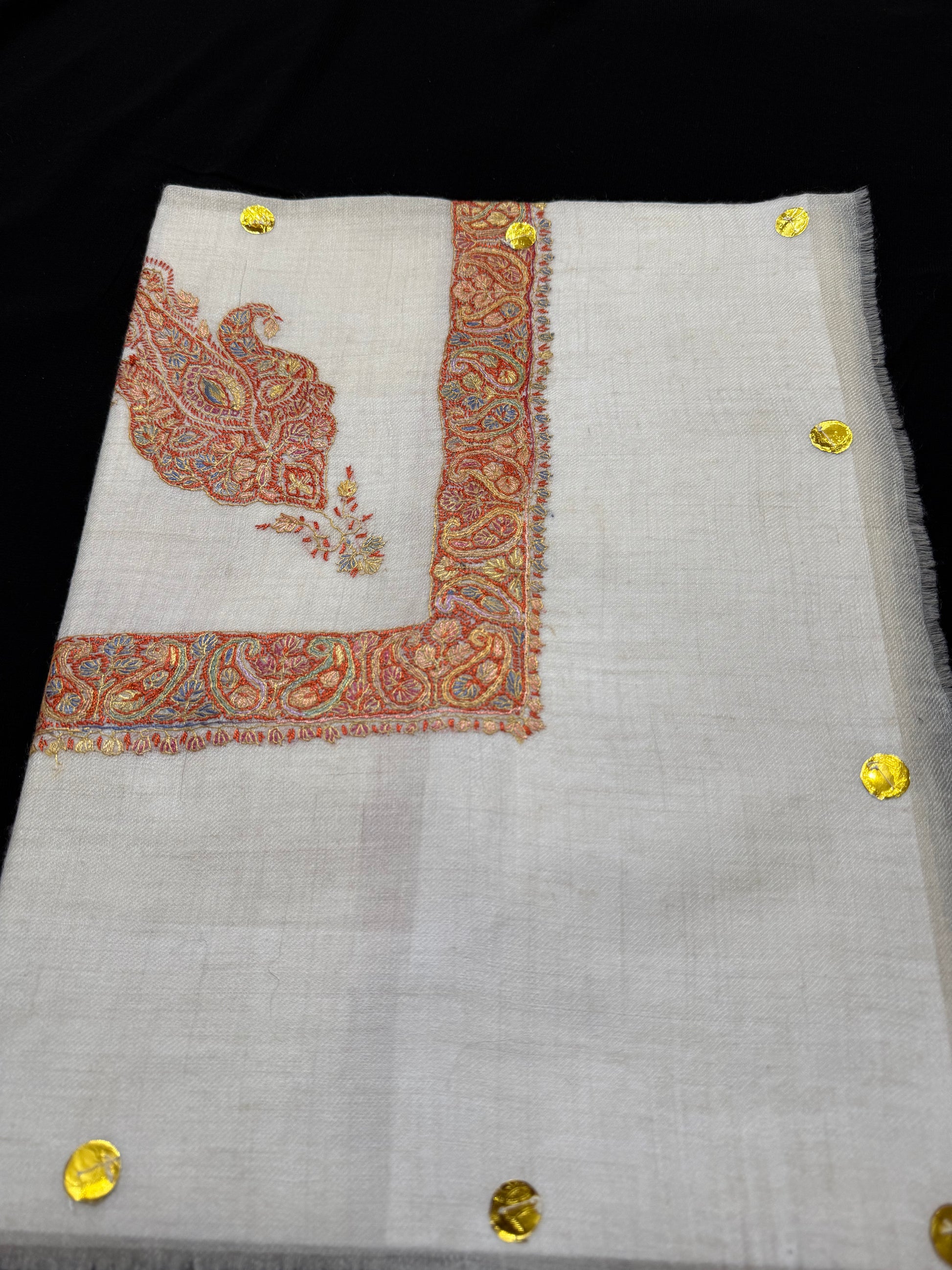Elevate your elegance with the Rang-Tarah Pashmina Shawl, meticulously hand-woven from 100% beige pashmina. Adorned with exquisite Rang-Tarah embroidery crafted from the finest threads, this shawl offers a timeless blend of luxury and artistry. Perfect for adding a refined touch to any ensemble.